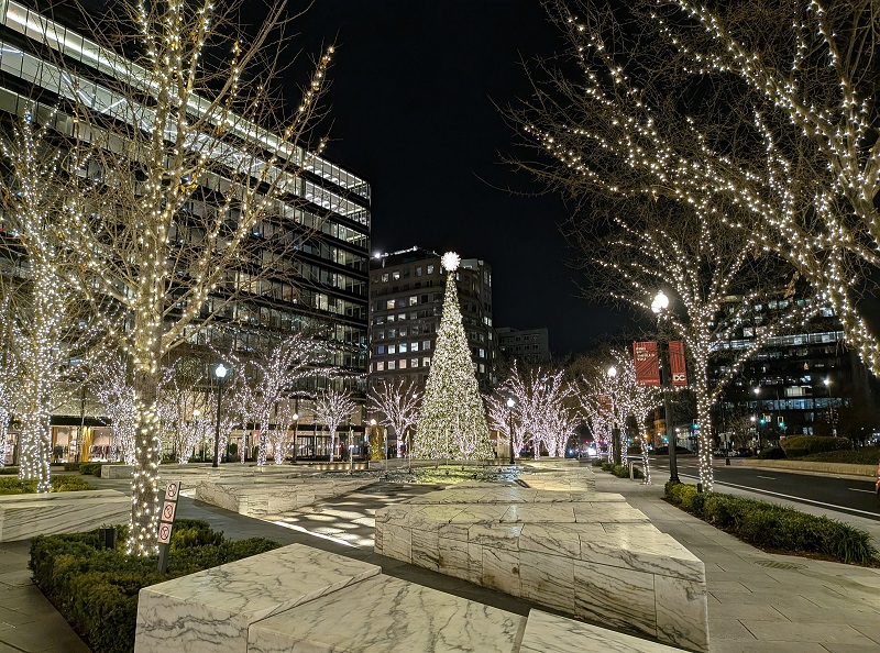 12時間に及ぶ長時間フライトを経て到着したワシントンD.C.では、ちょうどクリスマスシーズンを迎え、街は美しいイルミネーションに彩られていました。見た目には華やかで温かみのある雰囲気でしたが、実際の気温は日本よりも10℃近く低く、最高気温が0℃で雪の降る日もあり、移動のたびに寒さに肩をすくめる日々でした。